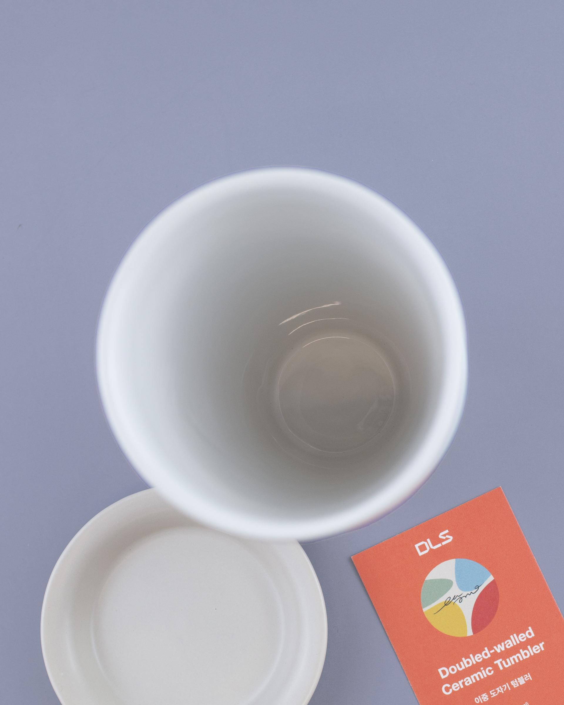 지속 가능한 라이프스타일을 추구하는 브랜드 DLS 디엘스와 조형 작가 이준석의 협업으로 탄생한 이중 도자기 텀블러입니다.