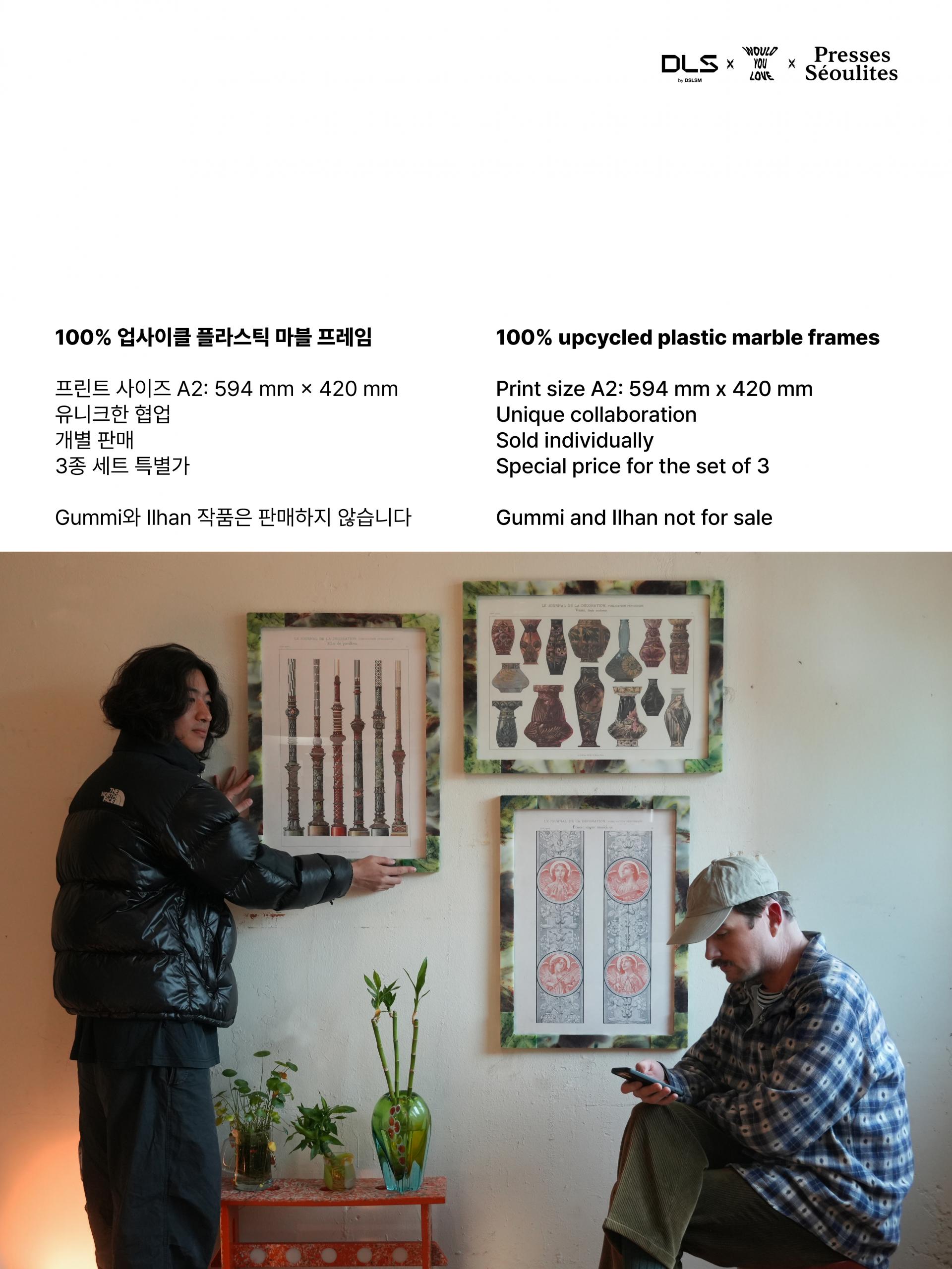 - 액자 프레임: HDPE 재활용 소재 (Plastic Marble by WYL x DSLSM)